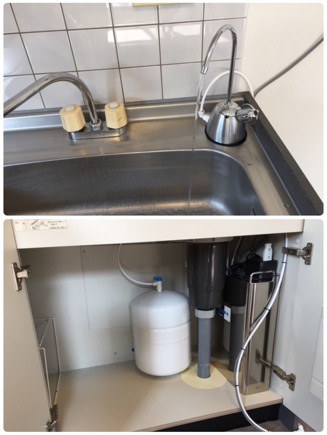 今回は会社事務所兼カフェのお客様にRO浄水器を設置しました。事務所ということで主要のキッチンとは別に簡易型キッチンの方に浄水器が見えるように設置してあります。蛇口はBタイプです。作業後美味しいアイスとコーヒー頂きました!今後ともよろしくお願いいたします^^